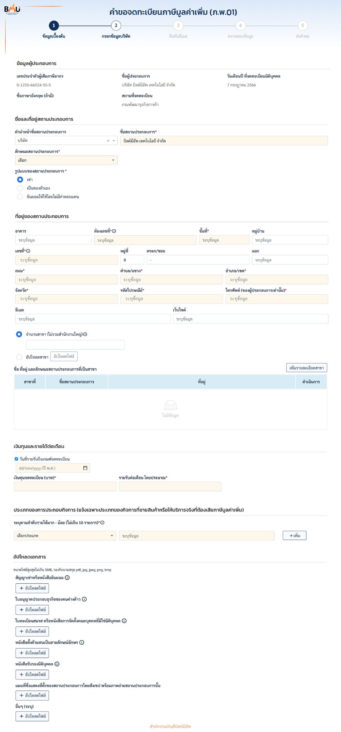 - การขอจดทะเบียน Vat ในรูปแบบออนไลน์