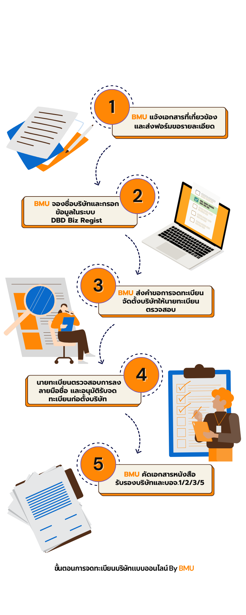 3.BMU จัดเตรียมเอกสารในการขอจดจัดตั้งบริษัท 1-2 วันทำการ